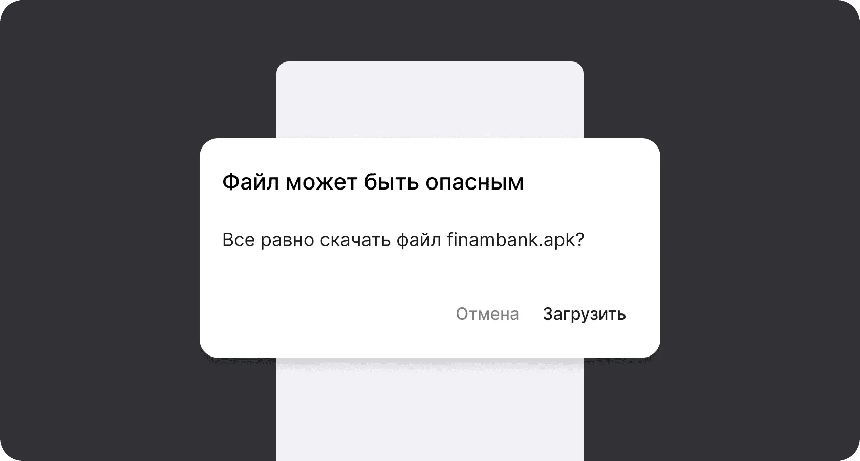 На экране может появиться системное предупреждение о безопасности — это стандартная реакция системы при загрузке файлов с веб-сайта. Если вы скачали файл с официального сайта finambank.ru, он безопасен. Загрузите его и подтвердите действие при необходимости